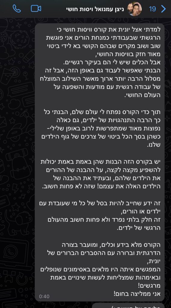 >> זה אחד הקורס המשמעותיים והחשובים לכל הורה ולכל אדם שעובד עם ילדים או מדריכות הורים